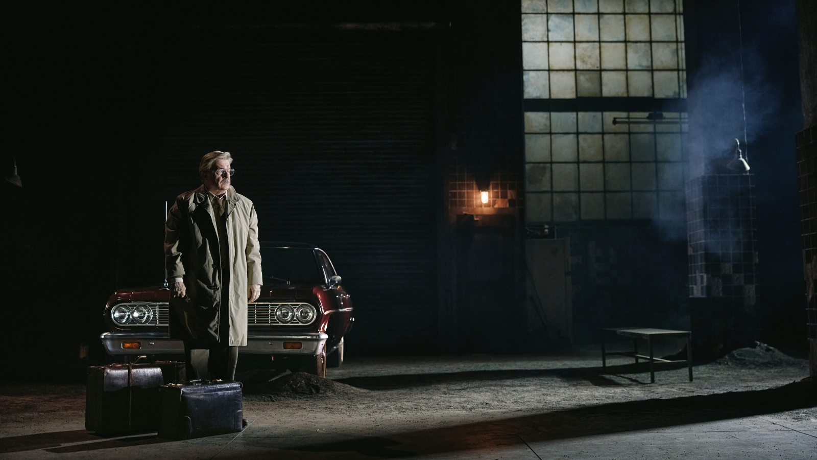 As played by a perfectly icy John Drea, Howard is an unfeeling man. He is not cruel, exactly. But certainly Howard is more engaged with his fancy new wire-recording contraption than the desperate Willy. Designer Rudy Mance costumes Drea in a suspiciously Patagonia-adjacent vest, starkly contrasting with Lane’s overworn beige suit—an outfit almost as wearily ragged as the man. Drea is not tall, but standing over the defeated Lane, his dominance is without question. Howard is the future: impersonal, driven by innovation, uninterested in history. Sitting opposite, Willy looks small and irrelevant, like a visitor from another time.