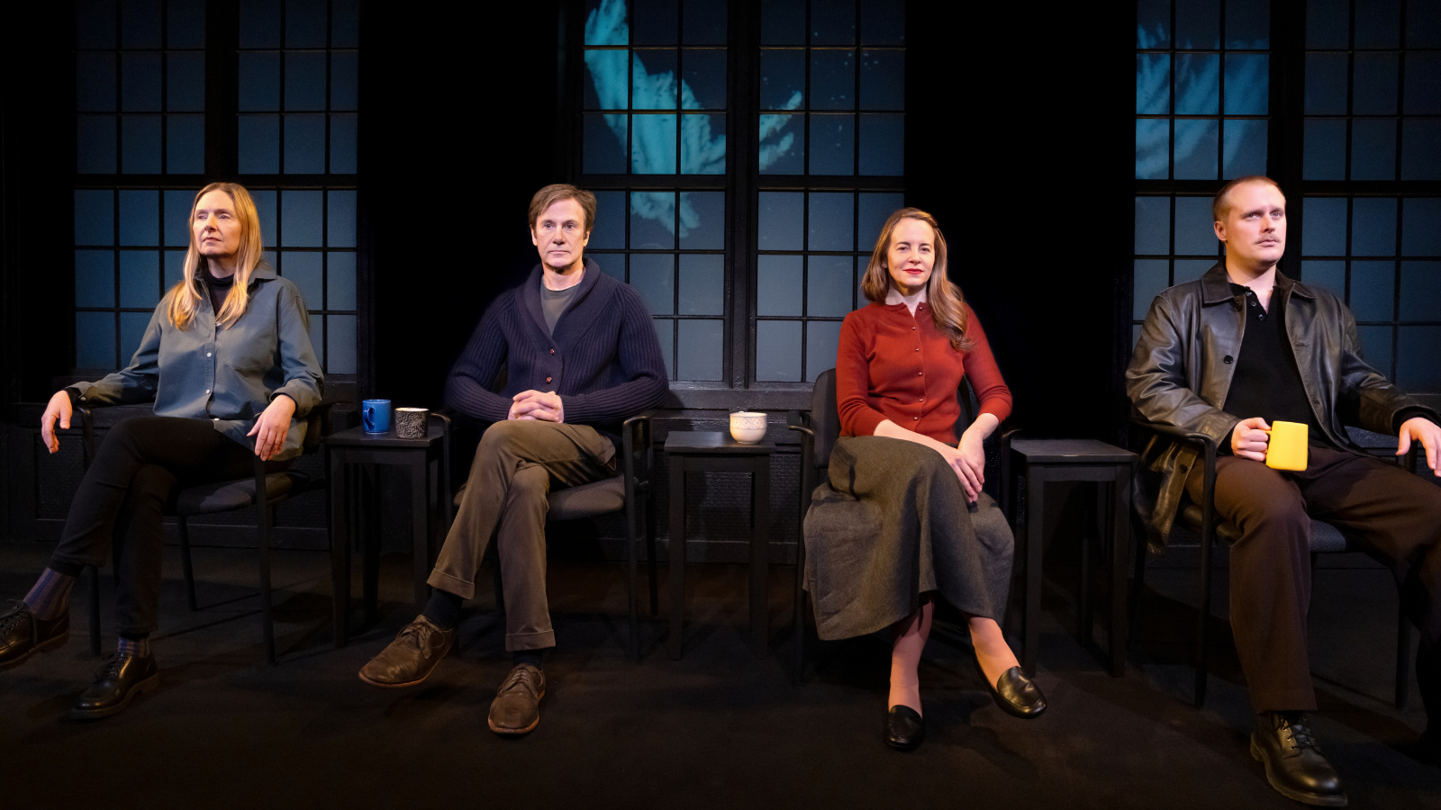 As Moth Days begins, the four actors saunter casually onto stage, still seeping mugs of tea. They even nod a polite greeting to us, the listeners, who will remain in a half-light for the first two acts (of three total). It feels, for a time, like we’re sitting across from each speaker at a dimly lit and vaguely purgatorial cafe, as they off-handedly share intimate wonderings at what it might feel like to touch their mother’s breasts (that’s Early), or confess they’ve “never enjoyed” acknowledging someone else’s pain (that one is Davis, actually).